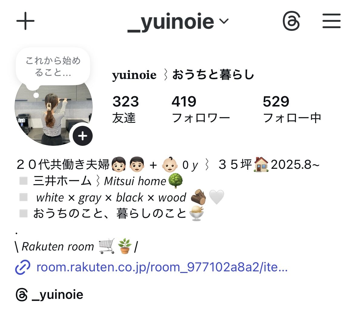 【2階建て・3LDK・35坪|3人家族】@_yuinoie|white×gray×woodの三井ホームの家